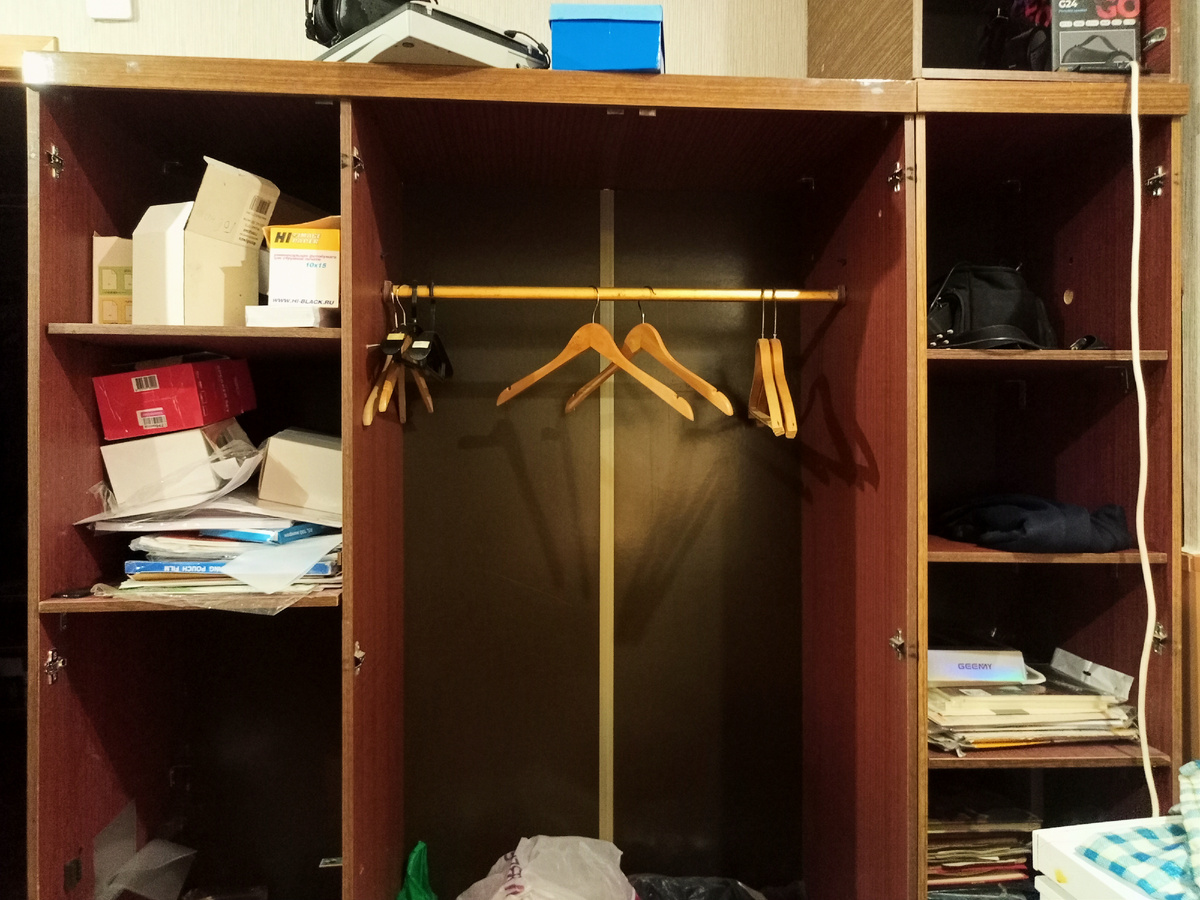 Решили мы в ней кардинально разобраться, убрать старый шифоньер и попробовать обойтись без него. Шифоньер переезжает в гараж, теперь там будем его захламлять. А на месте шифоньера встанет новый раскладной диван, который уже куплен и лежит в разобранном виде по всей квартире.