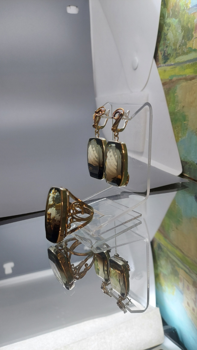 Всем доброго вечера и дооолгих приятных выходных, дорогие НАШИ! 🌞 Сегодня в эфире прекрасный серебряный гарнитур с лемотринами. Этот камень относится к кварцевой группе и сочетает в себе 2 цвета: раухтопаза и цитрина. Поэтому нам кажется правильнее было бы называть его раухоцитрином. Но названия камням даём не мы 🤷♀️ А жаль 😉 Очень красивые камни завораживают своей игрой. Минималистичная оправа в старинном русском стиле максимально раскрывает их прелесть. Гарнитур уже забронирован, поэтому полюбоваться на него вживую на выставках не получится. Зато эти фотографии останутся здесь радовать всех нас своей красотой🔥