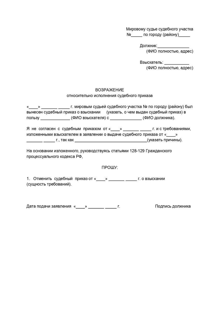 В данной статье мы разберем, что такое судебный приказ и как его отменить. Что такое судебный приказ и когда он применяется. Судебный приказ — это документ, имеющий силу исполнительного листа, который выдается судом в упрощенном порядке. Некоторые особенности судебного приказа: · Упрощённая форма рассмотрения дел. Судебный приказ выносится без участия сторон, судья принимает решение на основании предоставленных документов. · Бесспорность требований. Требования, по которым выносится судебный приказ, должны быть подтверждены документами, достоверность которых не вызывает сомнений, а также признаваемыми должником. · Ограниченный размер требований. Для суда общей юрисдикции сумма требований не должна превышать 500 тыс. руб., для арбитражного суда — 400 тыс. руб., за исключением требований о взыскании обязательных платежей и санкций (требования не должны превышать 100 тыс. руб.). · Возможность отмены. Если в течение 10 дней с момента получения копии судебного приказа должник представит в су