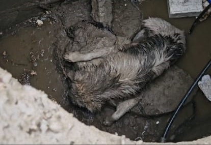 Спасательная операция заняла время и потребовала усилий. Сначала мужчина спустился вниз в коллектор и попытался поднять обессилившую собаку. Однако пес начал проявлять в замкнутом пространстве агрессию и тогда эту идею пришлось оставить. Но несмотря ни на что сотрудник «Дино» все решил до конца помогать этой собаке. Пока люди обсуждали, как вызволять страдальца, пес продолжал неподвижно лежать среди мусора на дне коллектора. Здесь предположили, что собака явно сделал не одну попытку, чтобы выпрыгнуть наверх из ловушки, но у нее ничего не вышло. Тогда люди оставили для собаки на поверхности колодца шину, чтобы пес, выпрыгивая, имел возможность зацепиться. Однако собака не поспешила воспользоваться ей: - Он, наверное, думает, что мы его закрыли. Дополнительно мужчине пришлось взять в руки палку, чтобы оттянуть провода, шланги и другой мусор, в котором в колодце застряла одна из собачьих лап. Дополнительно мужчина накидал на дно коллектора несколько старых шин. Пес какое-то время продолжа