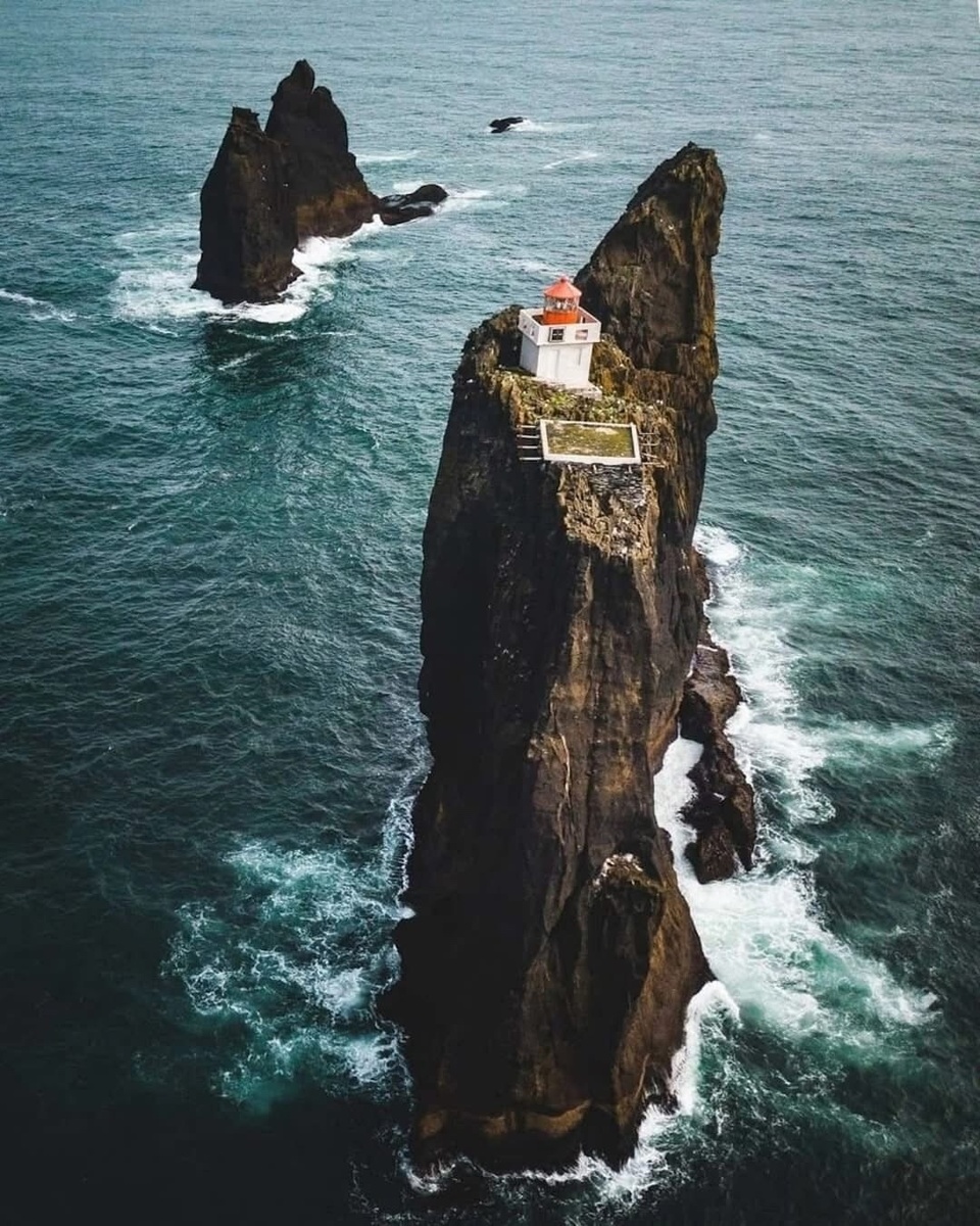 Один из самых уединённых и труднодоступных маяков в мире. Он расположен на вершине отвесной скалы Stóridrangur (архипелаг Вестманнаэйяр) в 7 км от юго-западного побережья Исландии. Высота маяка над водой — около 30 метров, а прожектор находится на высоте 34 метров. Каждые 30 секунд он даёт вспышку, видимую на расстоянии до 17 километров. Зачем нужен маяк Тридангар возводили, чтобы спасти суда от коварных рифов и туманных ночей. Его огонь — результат человеческой изобретательности и решимости. Тридрангар служит ориентиром для судов, проходящих через опасный участок Атлантического океана. Как строили Строительство началось в 1938 году и завершилось в 1939-м. Из-за труднодоступности места все работы проводились вручную. В строительстве участвовали местные жители коммуны Вестманнаэйяр, которые были опытными скалолазами, так как добывали яйца морских птиц. Чтобы добраться до вершины скалы, рабочие использовали ручные дрели и молотки для закрепления крючьев в крутом склоне, а затем натягивал