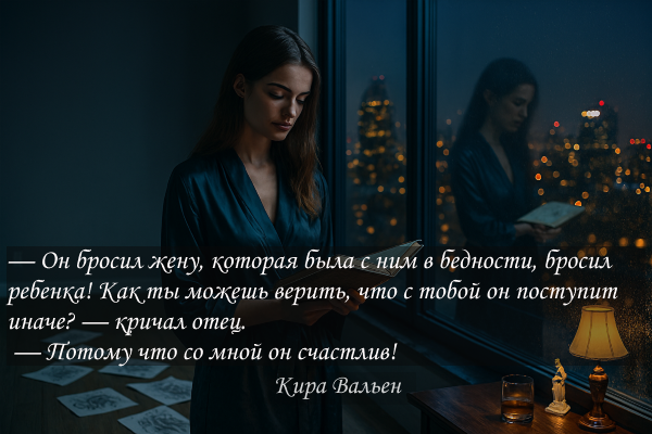 — Он тебя погубит, дочка! — голос отца, обычно такого сдержанного, дрожал от бессилия. — У него своя, сложившаяся жизнь. Ты для него — мимолетное увлечение. Он никогда не уйдет из семьи.