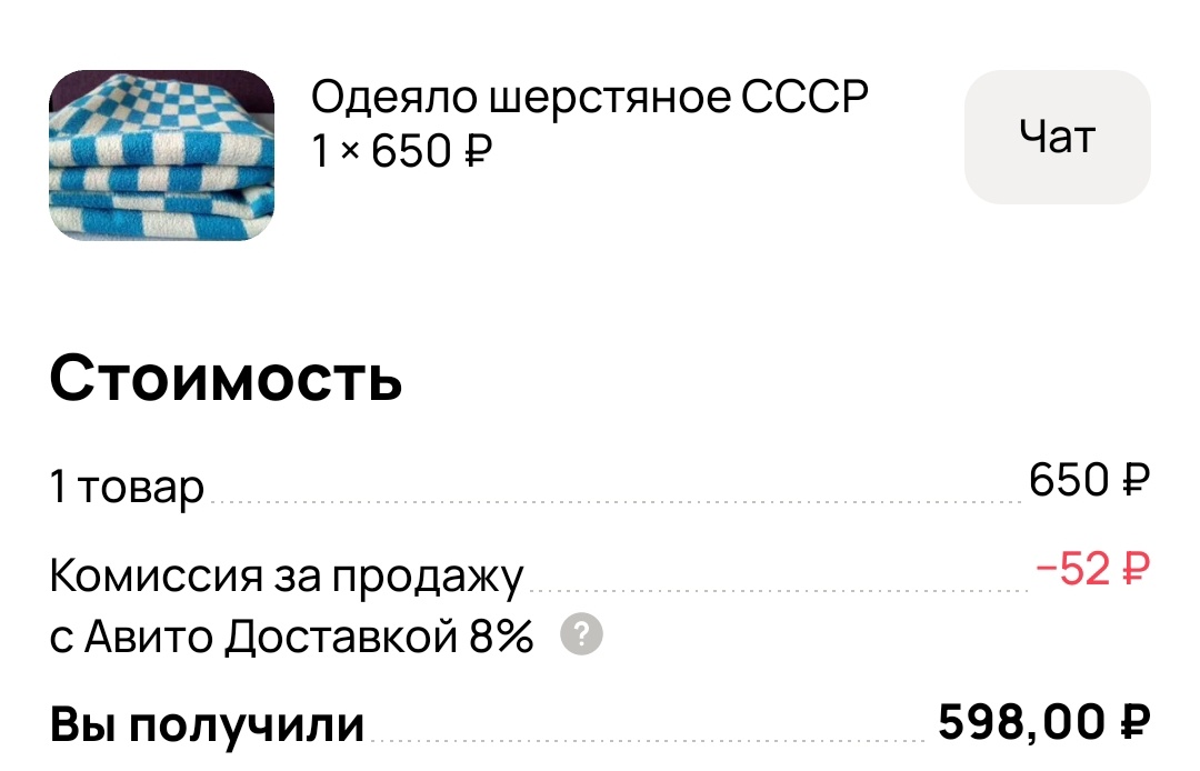 01.11.25. Суббота. Сегодня проснулась, в телефон заглянула, оказывается, ночью мне написали в Авито и сделали заказ. Хорошее начало дня и месяца. И как по накатанной пошли продажи вплоть до вечера. В общем, расскажу, как я сегодня заработала две тысячи. Утро началось позднее, чем всегда, в 8.15. Муж заболел, кашлял всю ночь. Я тоже спала плохо из-за этого. Ходил на работу больной, теперь приходится лечить уколами. Еле заставила его сходить сегодня в поликлинику. Надо же все-таки послушать лёгкие. Больничный брать не стал, у него пятидневка выходных. Врач выписал антибиотики, надеюсь они сделают своё дело. Вот и расходы приличные с начала месяца. Не успела заработать, как уже потратила тысячу на часть препаратов. Но я сегодня не об этом, а о доходах. Значит так. Пришел заказ на доставку. Соответственно, писать о продаже буду не сегодня, а тогда, когда придёт оплата. А вот за что пришла оплата, сейчас расскажу. Пришла оплата вот за это шерстяное одеяло. У меня было четыре шерстяных о