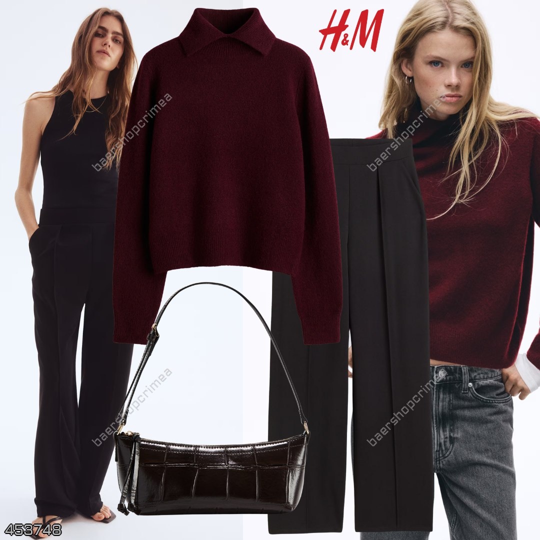 #HM 🇪🇸 Свитер с воротником поло (женский раздел) 2912₽ + вес Брюки (женский раздел) 2080₽ + вес Сумка (женский раздел) 2080₽ + вес ID: 453748 для заказа писать - ♥️@dianabrill