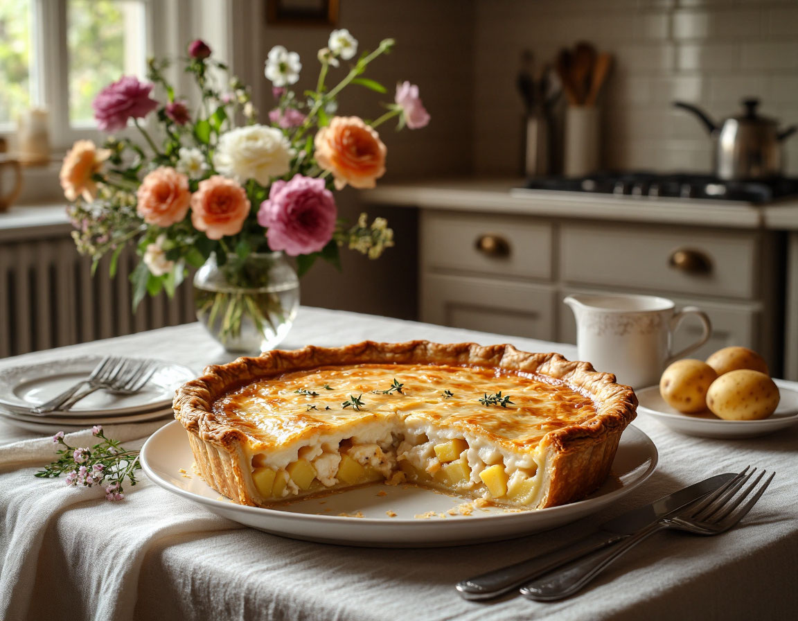 Вам понадобится: полтора стакана кефира или мягкого творога, один стакан муки, пара яиц, соль и сахар – по маленькой щепотке, пищевая сода, гашенная в кефире (треть чайной ложки), и столовая ложка растительного масла. Для получения более нежной консистенции пирога, рекомендуется просеять муку, слегка взбить яйца до образования легкой пены, а творог протереть через мелкое сито. Для начинки: Одна банка рыбных консервов (практически любых, кроме килек в томате или шпрот), три сырых картофелины, соль и перец – по вкусу, одна луковица.
