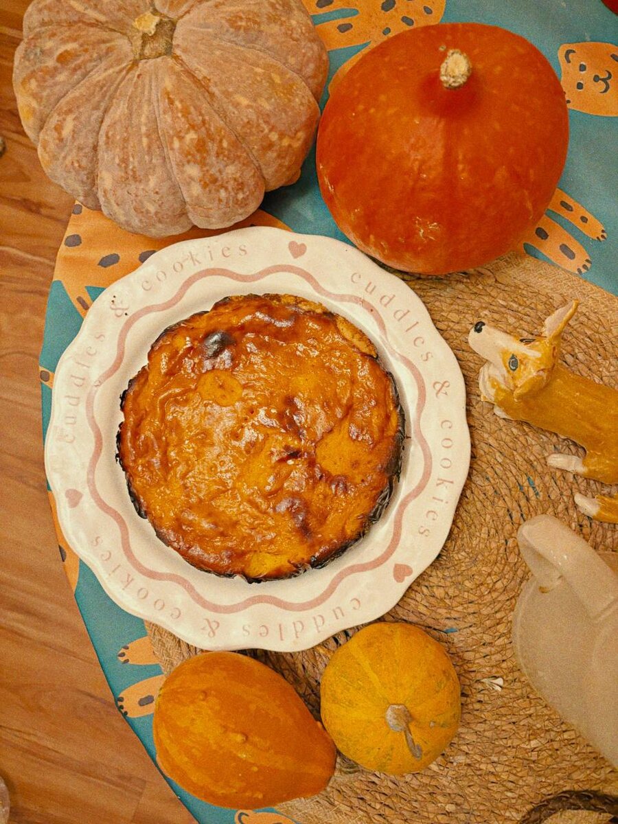 Вы можете посмеяться, но сегодня я впервые пробовала тыкву ☕️ Попалась хорошая, на вкус похожа на что-то между морковкой и дыней… Но я всё ещё не поняла, что к чему 🙂 В общем, сегодня состоялся кулинарный дебют с тыквой по рецепту любимого кондитера Ани: https://t.me/smiledrop_space/828 Получился практически тыквенный чизкейк. Все довольны 🛝