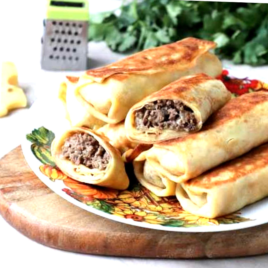 Рецепт 1: Блинчики с говяжьим фаршем, томатами и сулугуни