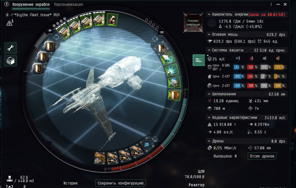 Если у противника 3-5 кораблей, то стоит подобрать более танкованный формат, например линейный крейсер Hirrucane Fleet. средних слотов у корабля мало поэтому приходится обходиться без cap-бустера и рассчитывать запас энергии