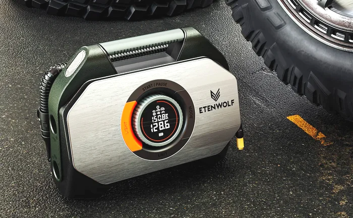 Портативный насос ETENWOLF S7 — это два полезных устройства в одном: надёжный компрессор для шин и мощный внешний аккумулятор для смартфона. Встроенный манометр показывает давление в реальном времени, а если задать нужное значение, насос сам отключится, как только достигнет цели — никакого перекачивания или недокачки.