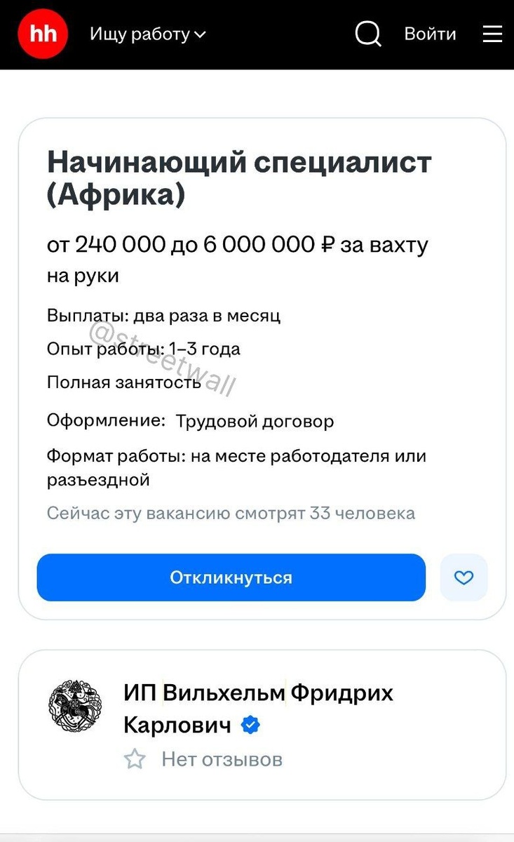 «Питерская компания ищет работников в Африку с зарплатой до 6 млн рублей