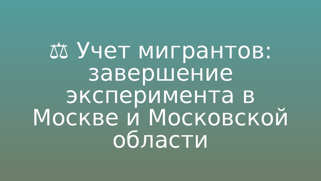 В Москве и Подмосковье завершается эксперимент по постановке иностранных граждан на учет с применением современных технологий. Цель — повышение точности учета и снижение правонарушений. Ответственными являются профильные органы столицы и области совместно с МВД.