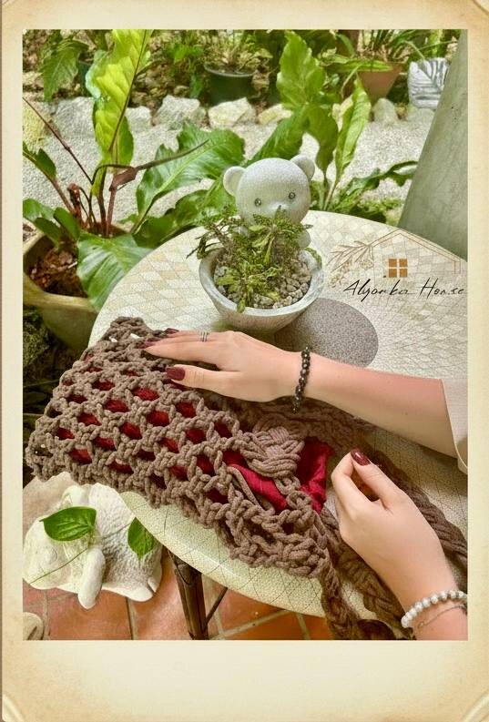 🌸 Добрый вечер, друзья! Хочу показать вам чудесный фотоотчёт, который я получила. За этими снимками — маленькая история. Однажды мне захотелось сделать подарок на день рождения замечательному человеку. В тот момент у меня в работе была макраме-авоська, но всё шло как-то не так: то «Жозефина» упрямо не хотела завязываться, то ручки не вписывались в единую модель. И вдруг — озарение 🧚♀️ Стоило представить эту сумочку в руках моей героини, как всё само собой сложилось: узлы стали послушными, ручки — идеальными, а внутренний мешочек будто сам сшился. Настоящее волшебство, чистая макраме-магия. Отдельно скажу про мешочек: он не просто про удобство, а и про стиль. Стоит сменить цвет — и уже новый акцент, новое настроение, всегда в тренде. Спасибо за эти фотографии! 🙏🏻 В них продумано всё — даже оттенок лака на ногтях перекликается с сумкой. Для меня это не просто красивые кадры, а настоящее признание и благодарность. Такие фото невероятно вдохновляют, ведь я творю с любовью к вам ❤