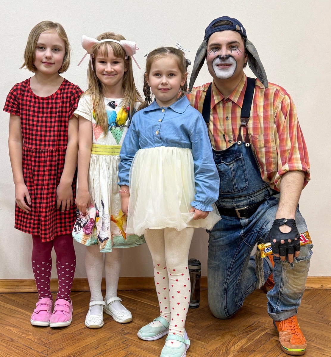 После спектакля БРЕМЕНСКИЕ МУЗЫКАНТЫ. Юные постоянные поклонницы со сказочными персонажами.