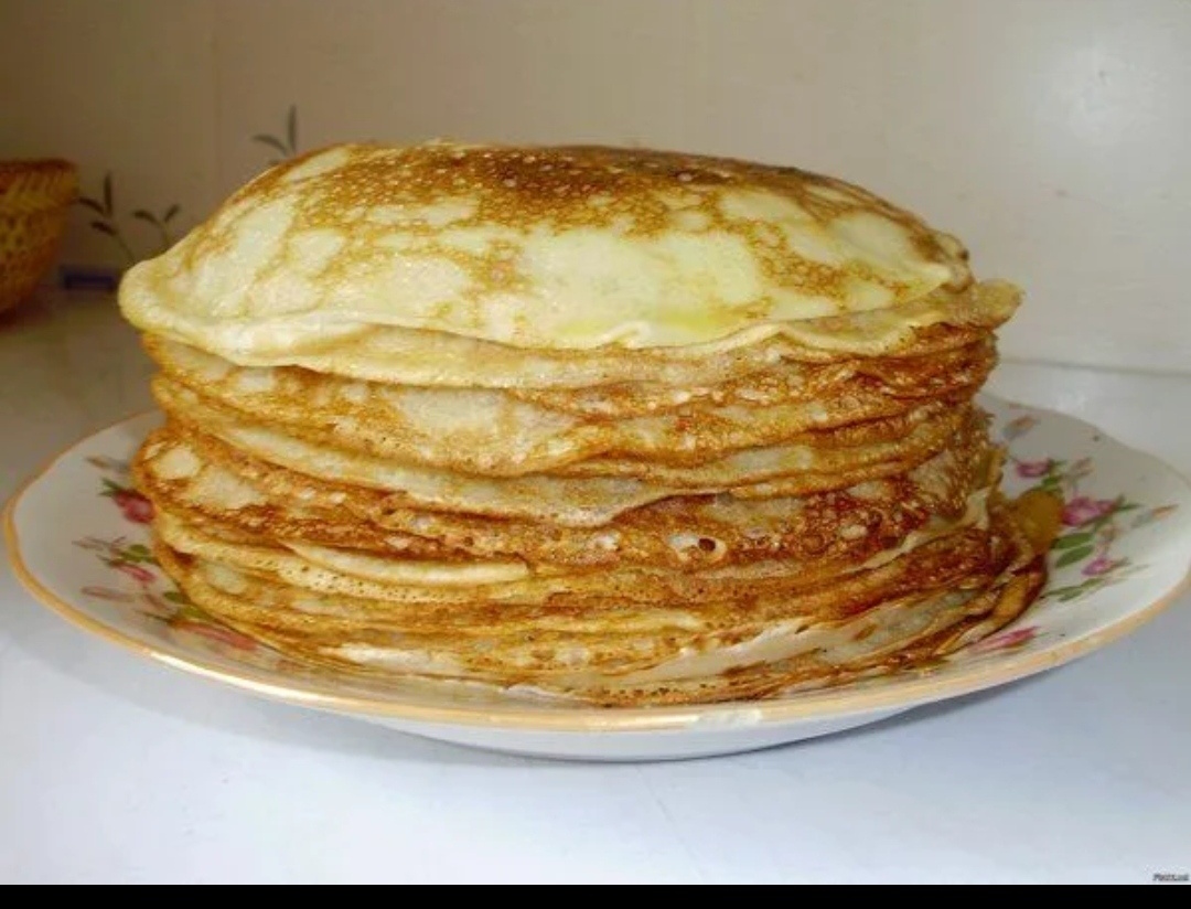 - Молоко — 500 мл - Яйца — 2 штуки - Мука — 250 г - Сахар — 2-3 столовые ложки (по желанию) - Соль — 0,5 чайной ложки - Растительное масло — 2 столовые ложки + немного для жарки - Вода (по желанию, для более тонких блинов) — 100 мл 1. В миске взбейте яйца с сахаром и солью до пышной пены. 2. Влейте половину молока, перемешайте. 3. Постепенно всыпьте муку, продолжая перемешивать, чтобы не было комочков. 4. Влейте оставшееся молоко и воду, если используете, добавьте растительное масло — перемешайте до однородной консистенции. 5. Дайте тесту постоять 10-15 минут для выравнивания. 6. На разогретую с небольшим количеством масла сковороду выливайте порцию теста, наклоняя сковороду для равномерного распределения. 7. Жарьте до золотистого цвета с обеих сторон (примерно по 1-2 минуты с каждой стороны). Совет: - Для более эластичных блинов тесто можно делать с добавлением немного сметаны или кефира. - Перед каждой порцией можно чуть смазывать сковороду маслом.