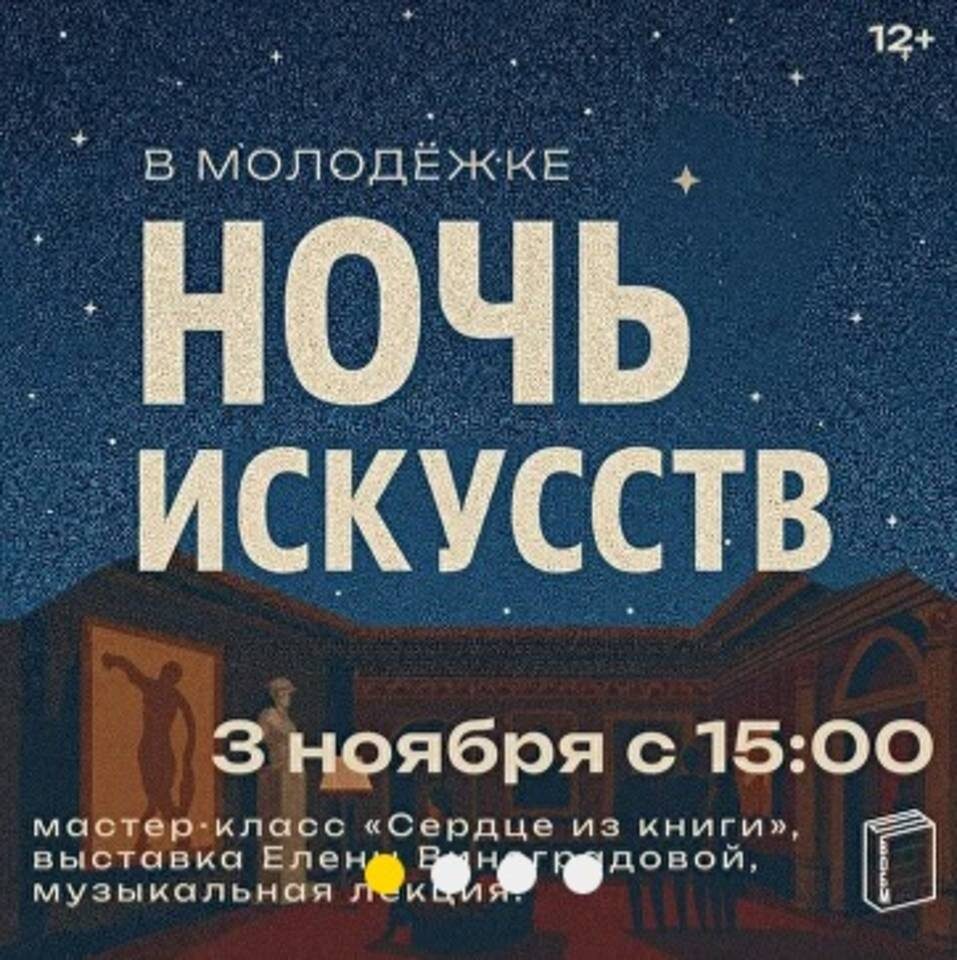 Традиционная акция, приуроченная ко Дню народного единства, в этом году объединит культурные площадки по всей стране. Ее главная цель — сделать искусство доступным, позволив каждому бесплатно приобщиться к творчеству. Волгоградская «Молодежка» встретит гостей сразу несколькими событиями. В 15:00 начнется мастер-класс «Сердце из книги», где библиотекари научат превращать старые ветхие издания в изящные арт-объекты с объемным узором в форме сердца. В 16:30 внимание гостей переключится на вернисаж. В библиотеке откроется персональная выставка «Состояния» художницы Елены Виноградовой, работающей в техниках живописи, графики и скульптуры. В экспозиции будут представлены работы разных лет, объединенные темами природы, космоса и внутренних переживаний человека. Презентацию дополнит камерный концерт поэта и музыканта Павла Борна, который исполнит авторские композиции. Завершит программу в 18:00 встреча Винилового клуба «1000 пластинок». Музыкальная лекция «Фольклор и Этническая музыка» будет п