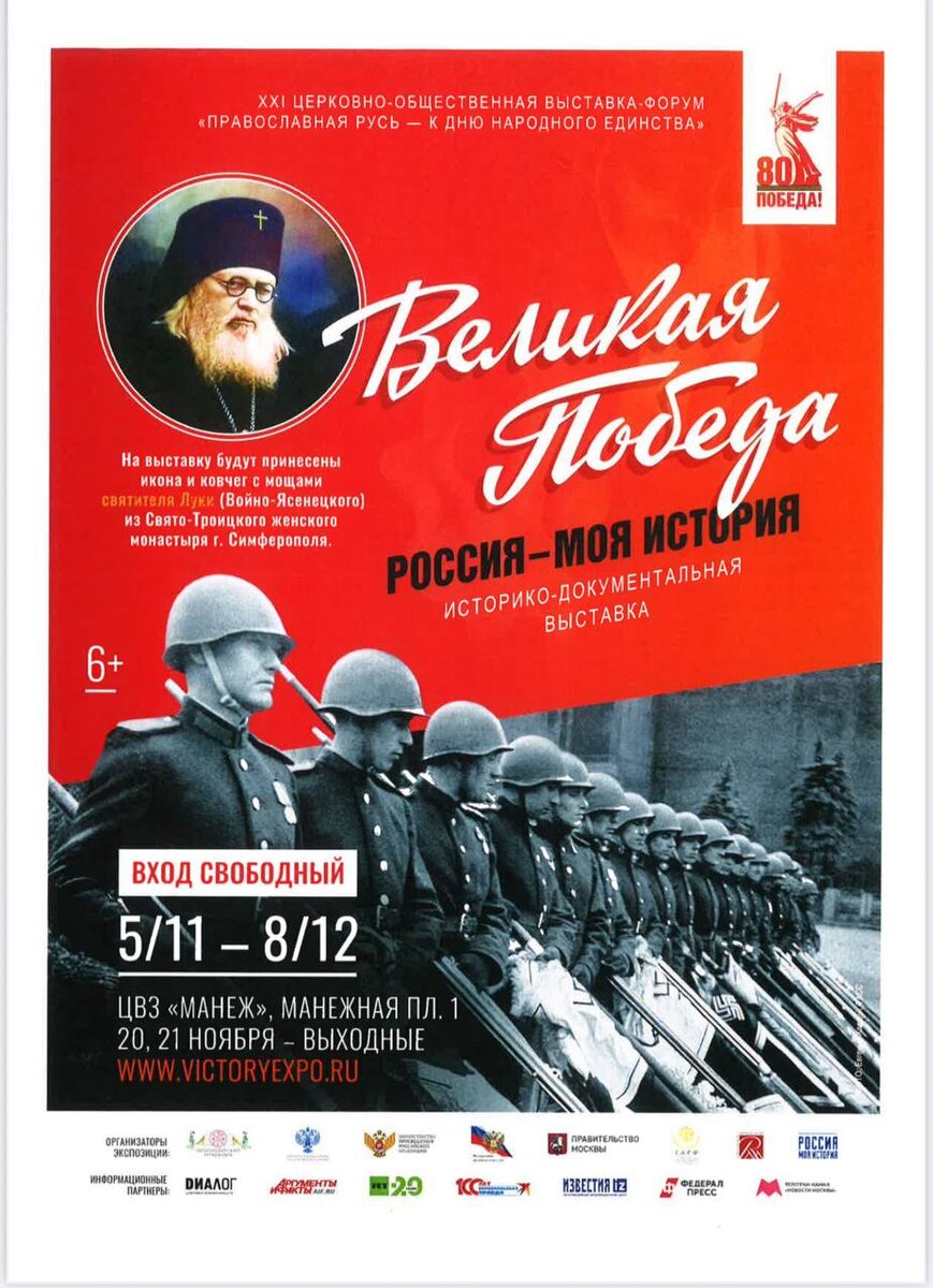 Выставка "Православная Русь" пройдет в рамках проекта "Великая Победа. Россия - моя история", посвященного 80-летию Победы. Верующие смогут помолиться святителю Луке и приложиться к его мощам.
