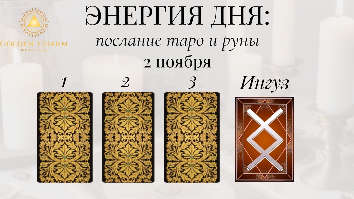 Заказать личный расклад тут✅ Прогноз на 2 ноября : что тебя ждёт Приходи на обучение Таро ✅ Выбери карту — 1, 2 или 3 — и узнай, какой путь для тебя: 1. Королева Мечей Это день принятия решений и ясности ума. Ты почувствуешь остроту восприятия, способность анализировать ситуацию объективно. Если предстоит выбор — доверяй своему разуму. 2. Пятёрка Денариев Возможны финансовые изменения или ситуации, требующие вложений. Это день уроков финансовой грамотности и перераспределения ресурсов. Откройся новому опыту и знаниям. 3. Паж Чаш Настроение мечтательное и творческое. Возможно вдохновение или новые творческие идеи. Наслаждайся потоком фантазии и проявляй креативность. Руна дня — Ингуз Энергия завершения циклов и начала новых этапов. Сегодня завершаются старые дела, освобождая пространство для свежих начинаний. Почувствуй освобождение и готовность двигаться дальше. Напиши цифру карты + ИНГУЗ в комментариях, чтобы активировать энергию. Хочешь личный расклад? Пиши — посмо