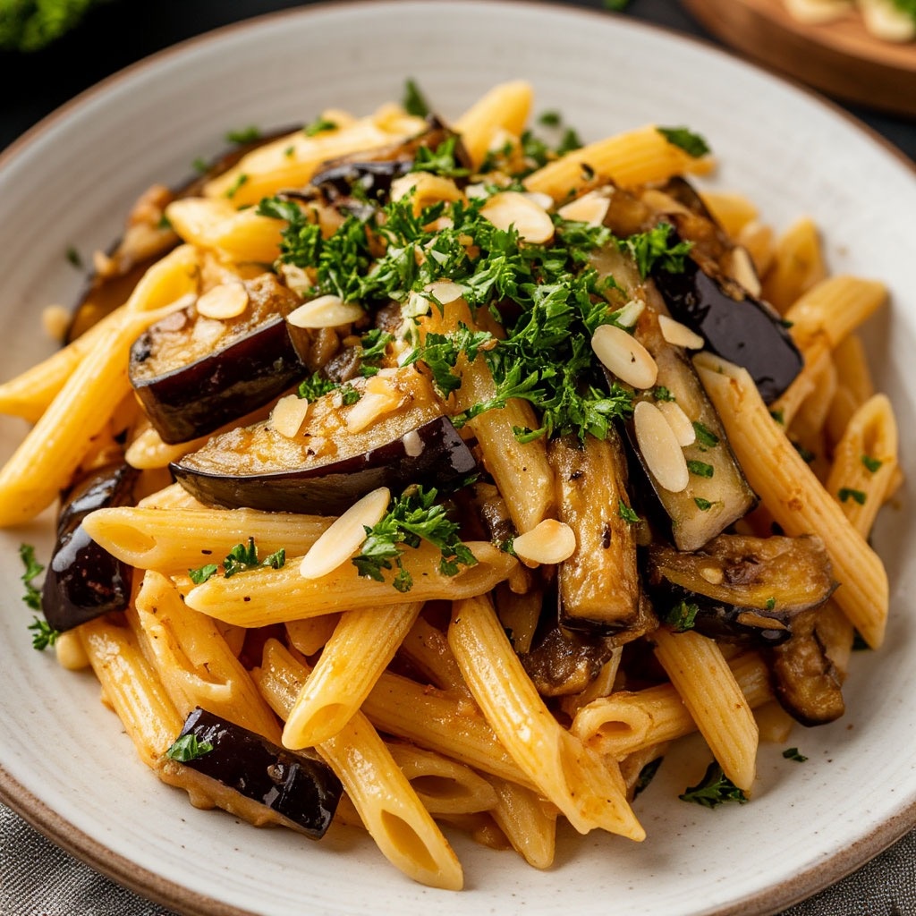 Нежное сочетание аль денте‑пасты, сочных баклажанов и хрустящего миндаля — это блюдо удивит вас гармоничным балансом текстур и вкусов. Простой в исполнении рецепт подойдёт как для семейного ужина, так и для небольшого званого вечера. Время приготовления: 45 минут