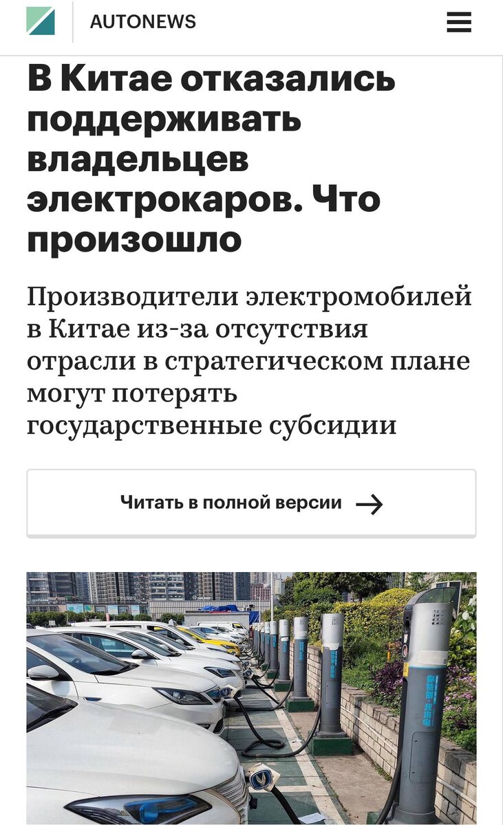 В плане развития на 2026-2030 гг. Китай исключил отрасль электромобилей, это значит, что производители потеряют многомиллионные государственные субсидии.