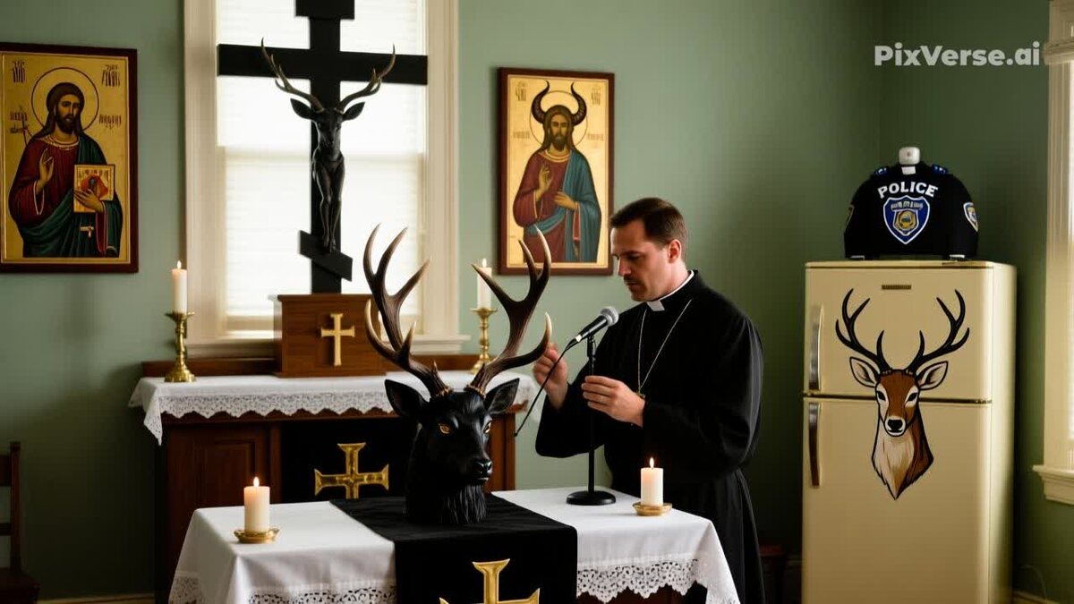 Церковь не была похожа на христианский храм. Точнее, она была похожа не только на храм Христа и Девы Марии. Здесь присутствовала христианская символика, но с дополнениями. Были иконы, скульптуры святых и ангелов, но у многих из них были рога. Распятие на алтаре также было в обрамлении рогов и гремучих змей.