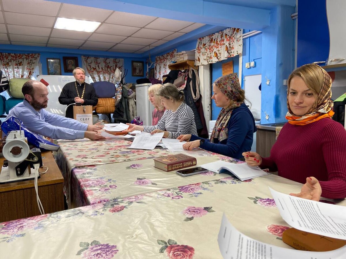 Новички, приехавшие из близлежащих городов, быстро втянулись в учебный процесс и активно участвовали в обсуждениях. Темой нового урока стало «Священная история Ветхого Завета. Введение в экзегетику». Все ученики с большим интересом слушали священника Вячеслава, задавали вопросы и получали ценные наставления о том, как правильно организовать свою духовную жизнь и применить полученные знания на практике.