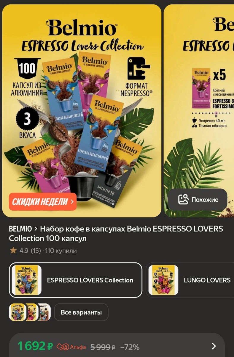 Набор кофе в капсулах Belmio ESPRESSO LOVERS Collection 100 капсул за 1692₽ за 100 капсул 🔥