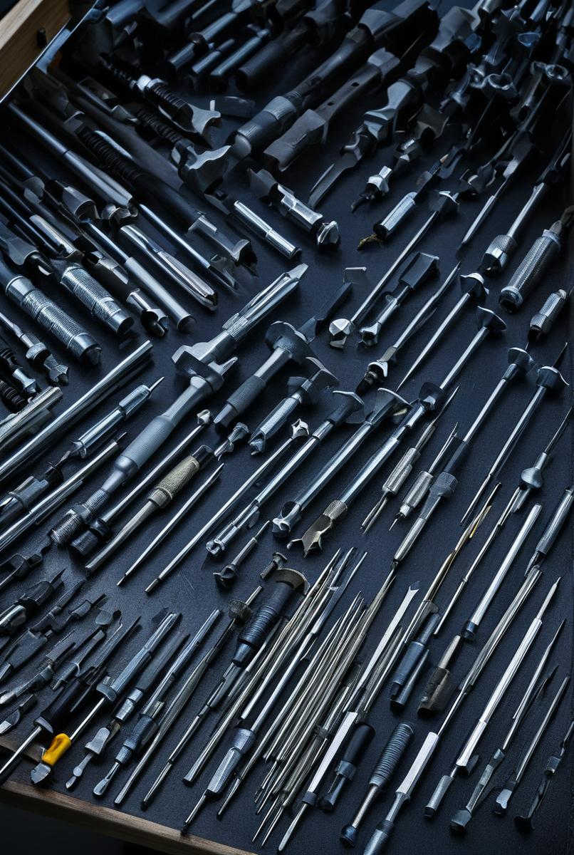 Прочный стержень делают из хром-ванадиевой стали (Cr-V). Для разных задач есть спецвиды: