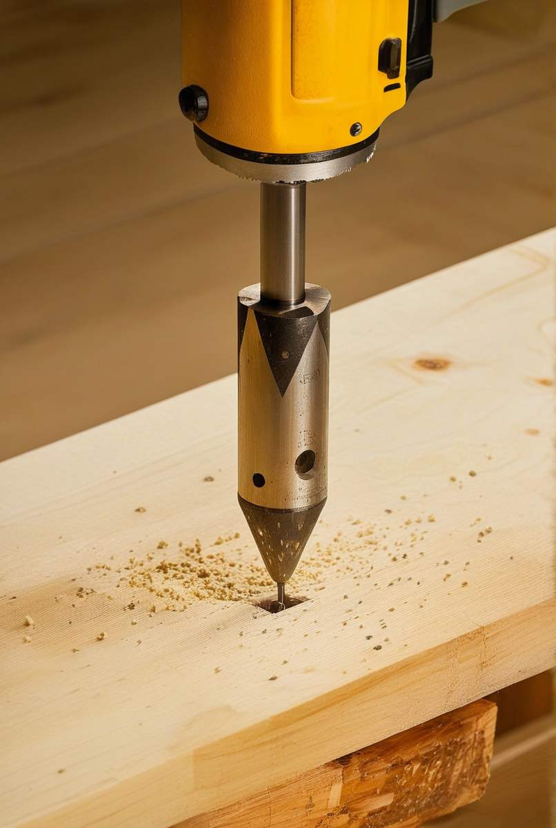 Сверление отверстий большого диаметра в древесине, ДСП, фанере: столярные работы, мебельное производство и строительные работы.