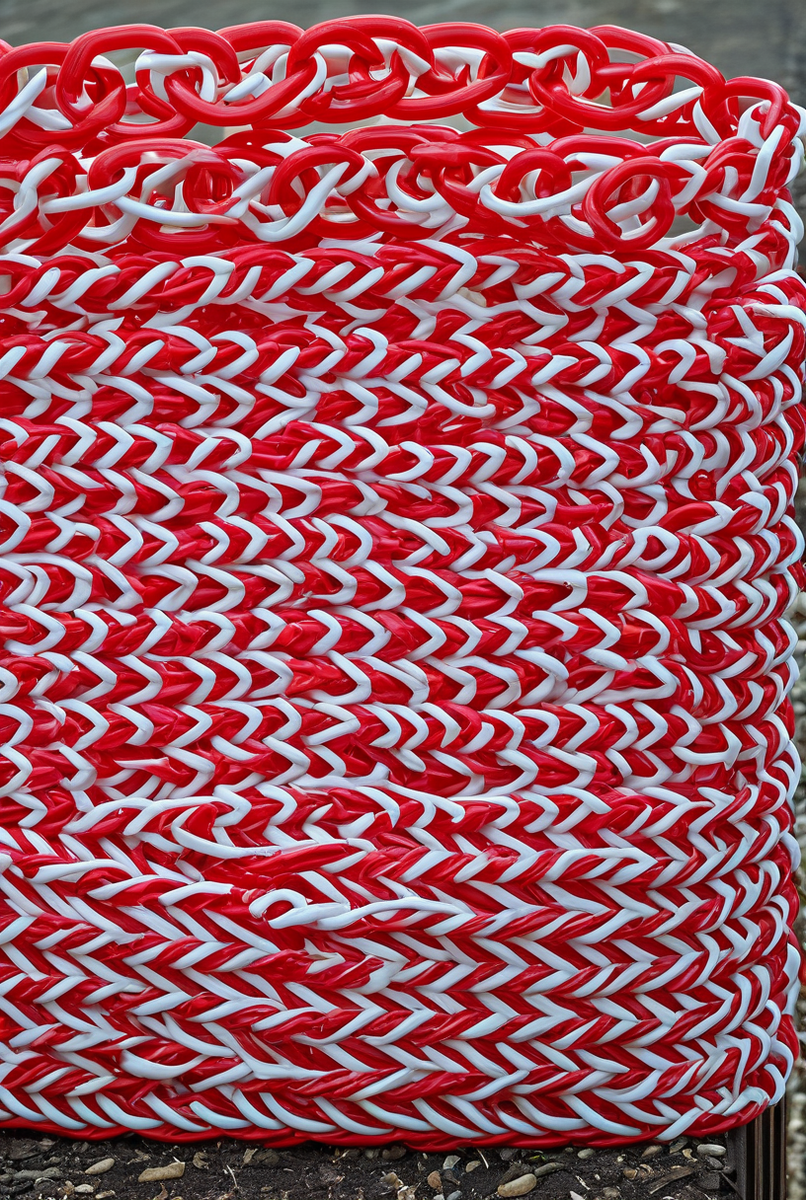Это классическое сочетание для обозначения непосредственной опасности, запрета прохода или экстренной ситуации. Красно-белая расцветка недвусмысленно говорит: «СТОП! ОПАСНО!». Красный цвет мгновенно привлекает внимание и ассоциируеться с тревогой, а белый фон делает его максимально контрастным и видимым издалека. Такое ограждение территории незаменимо для котлованов на стройке или зон аварийных работ. - Желто-черная цепь