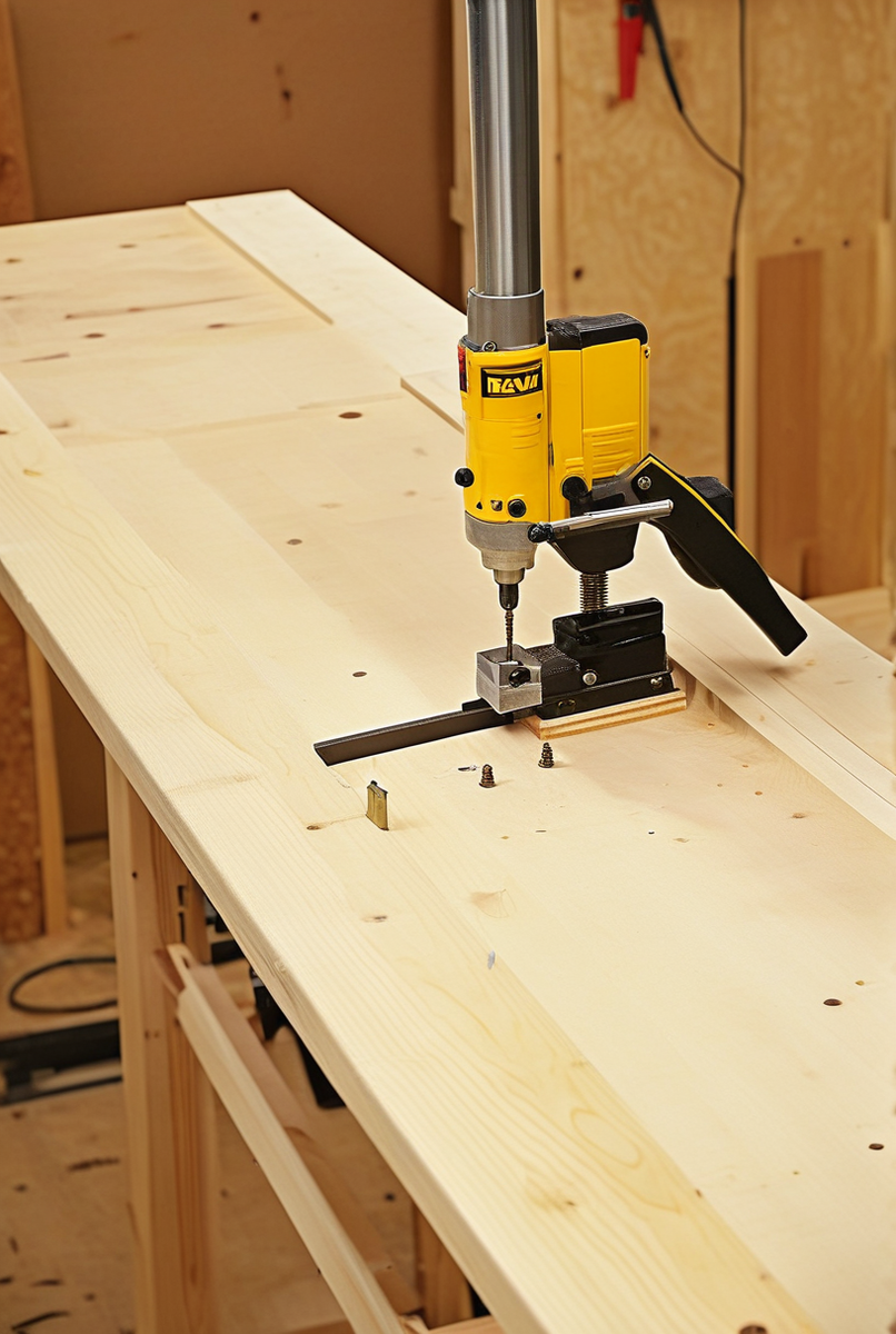 Ключ к успеху — это тщательная подготовка и фиксация заготовок. Во-первых, всегда точно выставляйте регулировку угла на кондукторе (например, KWB) под толщину материала. Во-вторых, используйте мощную струбцину для плотного прижатия деталей друг к другу во время закручивания шурупа. Это исключит любой сдвиг и гарантирует плотное соединение без зазоров. Для финишной эстетики используйте заглушки для отверстий, чтобы скрыть места крепления.