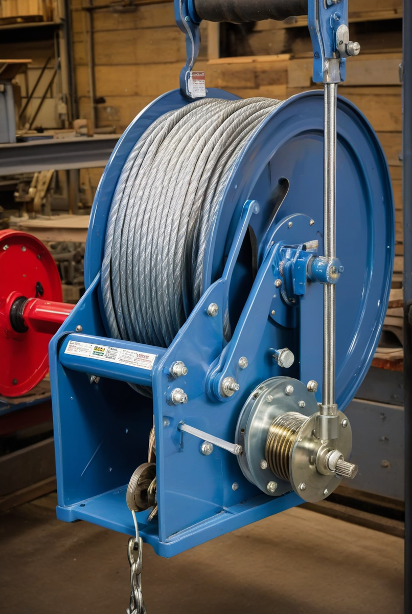 Конструкция барабанной лебедки — это совокупность взаимосвязанных узлов, обеспечивающих ее работу. Корпус, как правило, выполнен из прочной стали и служит не только защитой для внутренних механизмов, но и рамой для их крепления. Усилие оператора передается через съемную или стационарную рукоятку на редуктор. Этот узел (шестеренчатый или червячный) является сердцем устройства, так как он многократно увеличивает приложенную силу, преобразуя ее в мощный крутящий момент. Этот момент вращает барабан — специальную катушку, на которую наматывается стальной трос. На конце троса для зацепа груза используется прочный крюк с предохранительной скобой. За безопасность отвечает надежный тормозной механизм, часто грузоупорного типа, и храповый стопор. Они мгновенно блокируют вращение барабана в обратную сторону под нагрузкой, предотвращая падение или смещение груза;