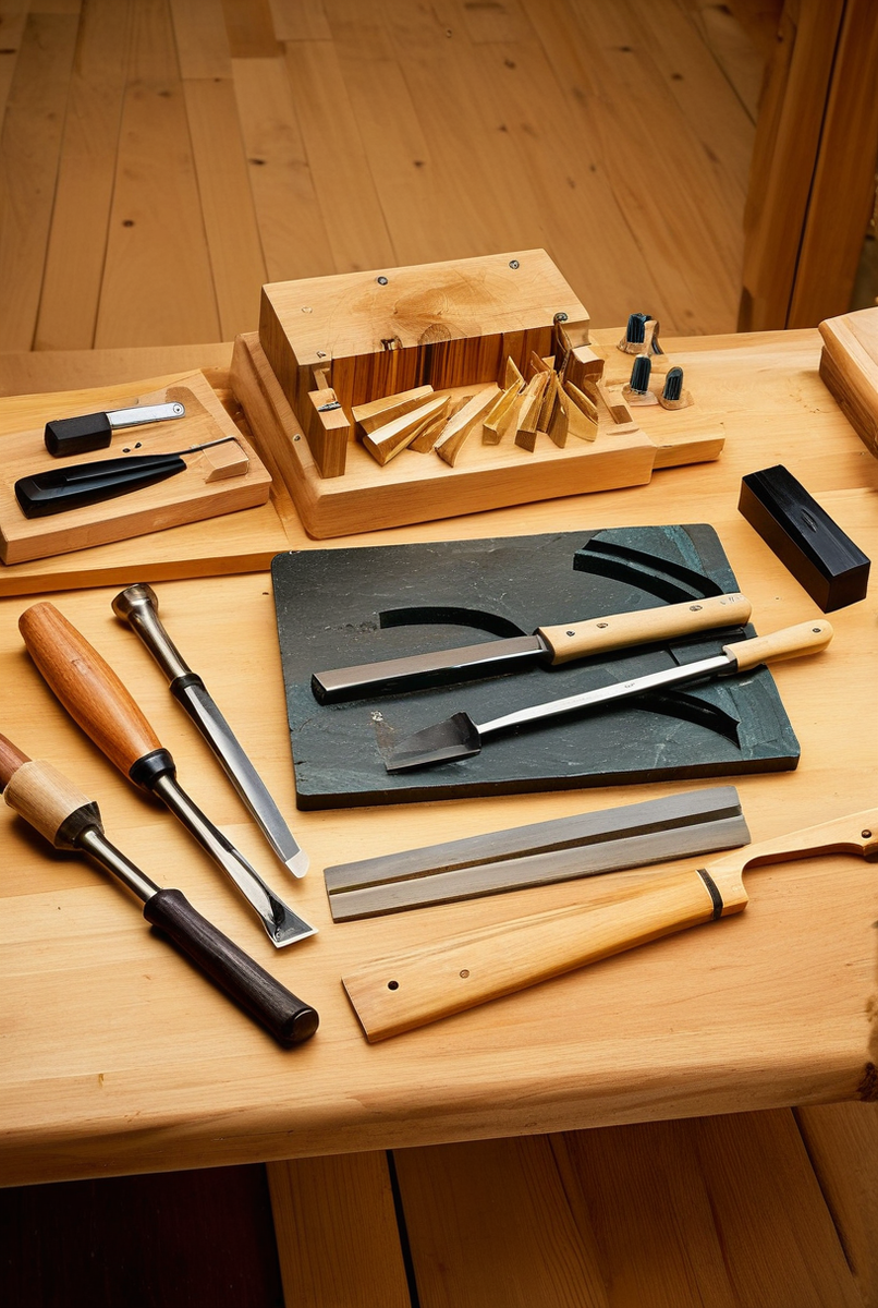 Для старта в резьбе по дереву не стоит покупать огромный набор стамесок сомнительного качества. Лучше приобрести 2-3 качественных инструмента. Идеальный стартовый комплект может включать: одну плоскую стамеску шириной 10-12 мм для общих работ и зачистки фона, одну-две полукруглых стамески разного радиуса для создания плавных линий и углублений, и одну угловую (V-образную) для прорезания контуров, что особенно важно для геометрической резьбы. Инструменты типа клюкарза понадобятся позже, для более сложных рельефных работ. Главное — научиться чувствовать инструмент и поддерживать его идеальную остроту лезвия, ведь именно она определяет качество реза на деревянной заготовке.