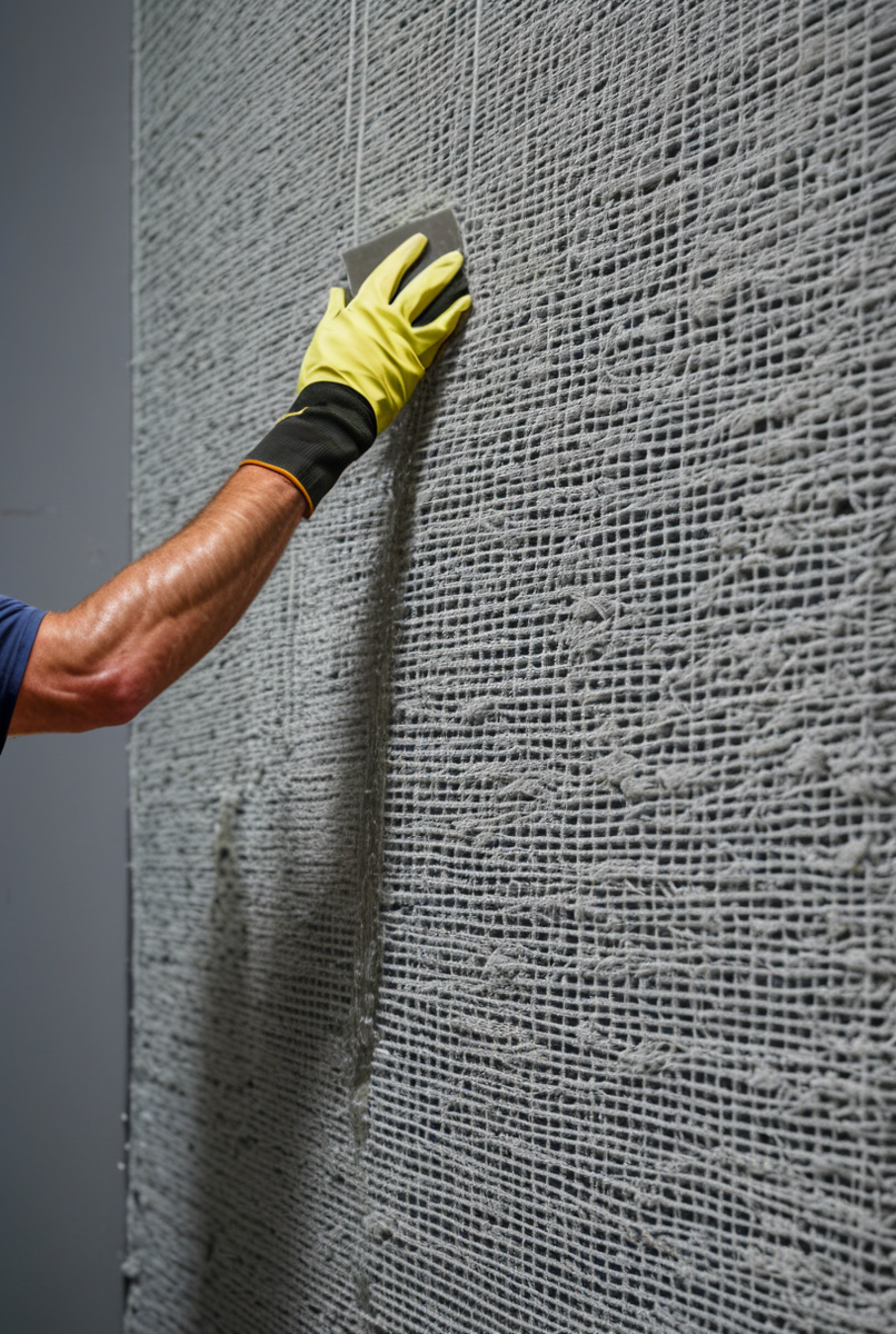 Это основной элемент для наружных работ и системы утепления типа «мокрый фасад». Она обязательно должна быть щелочестойкой, чтобы противостоять агрессивной среде цементной штукатурки и клеевых составов. Стандартная плотность (145-165 г/м²) обеспечивает надежное армирование базового слоя, наносимого на утеплитель (пенопласт, минеральная вата), и гарантирует предотвращение трещин.