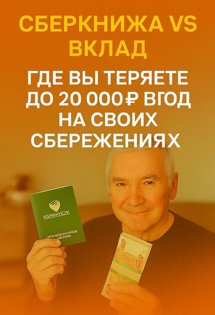 Я много лет хранил деньги на сберкнижке. Казалось — надёжно, привычно, удобно. А потом посчитал: каждый год теряю до 20 000 рублей просто потому, что не перевёл деньги на вклад. У меня на сберкнижке лежало 200 000 рублей. Не трогал — «на чёрный день». Однажды в банке мне сказали: «А вы знаете, что на сберкнижке процент — около 1% в год? А на вкладе — до 10%.» Остались вопросы ! Подписываемся на наш Телеграм Я переспросил: «То есть я теряю 9% дохода каждый год?» Сотрудник кивнул. Я пошёл домой — и посчитал. Я взял ручку, лист бумаги и решил разобраться: сколько я теряю, если держу деньги на сберкнижке. У меня там лежало 200 000 рублей. Казалось — надёжно, привычно. Но процент по сберкнижке — всего 1% годовых. Это значит, что за год я получаю 2 000 рублей. А если бы я положил эти же деньги на вклад под 10% годовых, то получил бы 20 000 рублей. Разница — 18 000 рублей в год. Это не просто цифры — это лекарства, продукты, помощь детям. Я подумал: «Выходит, я каждый год просто дарю бан