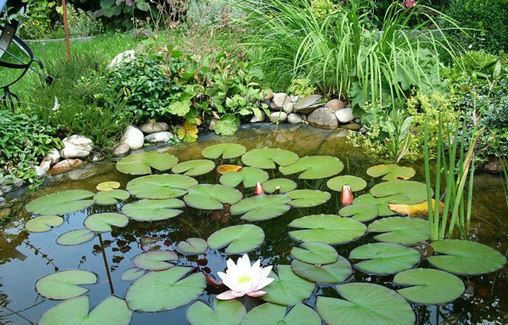 Кувшинки — декоративные водные растения с широкими листьями и яркими цветами. Помогают очищать воду и создают тень, комфортную для рыб. Рогоз — высокие прибрежные растения, которые не только украшают берег, но и эффективно фильтруют воду. Аир — влаголюбивое растение с узкими листьями. Прекрасно чувствует себя у воды, способствует очищению почвы и придаёт берегам ухоженный вид.