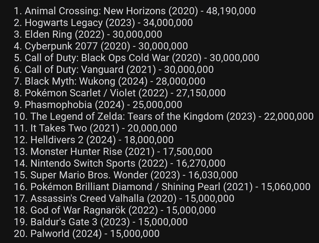 Самые продаваемые игры, которые вышли в период с 2020 года по 2025-й