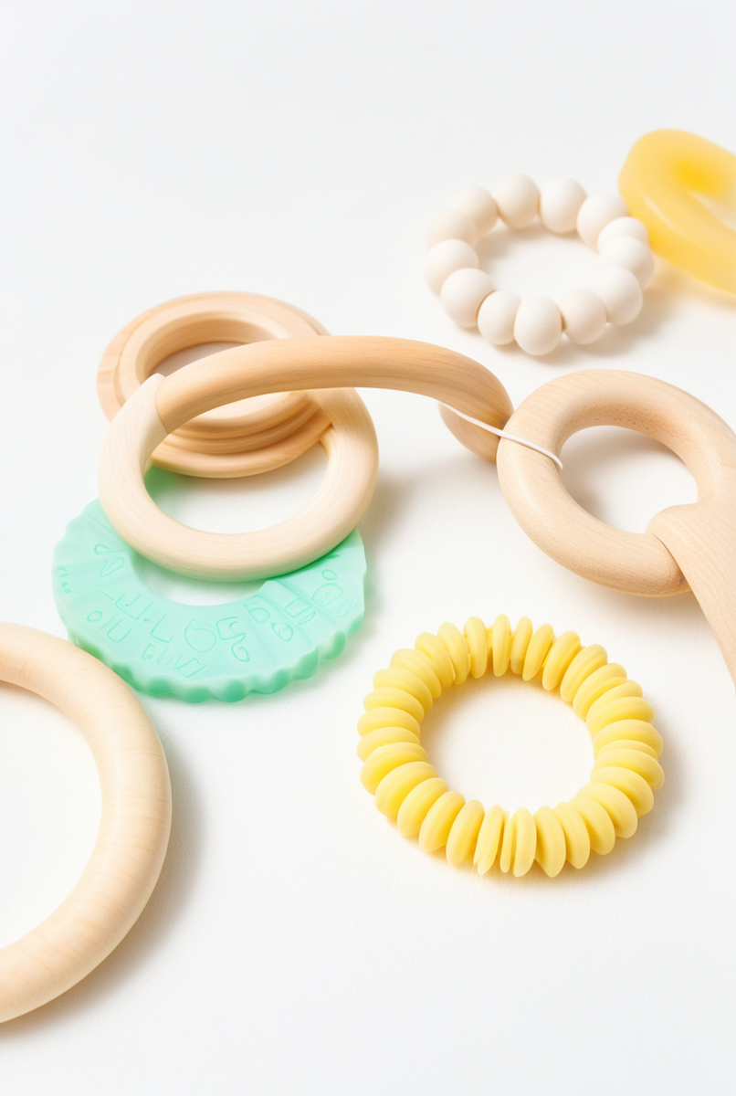 Безопасность прежде всего: ищем нетоксичный материал (пищевой силикон, натуральный каучук, дерево без BPA), гипоаллергенный, с цельной конструкцией без мелких деталей и сертификатом качества․