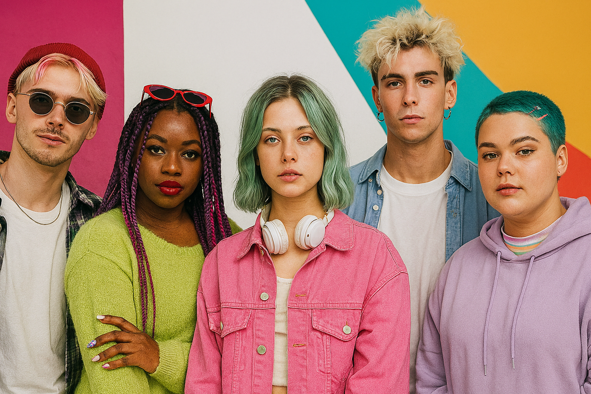 Ради кого надрываются артисты в 2021-м? Нейросети уже запуганы настолько, что очень осторожно и с большой инклюзивностью рисуют образ этого потребителя. Не дай бог пропустить какой-то из гендеров или рас, что-то из физических и ментальных особенностей. Человек впадет в ПТСР, обострится СДВГ, произойдет эмоциональное выгорание... В общем, вот вам визуальный собирательный образ TikTok-поколения в представлении искусственного интеллекта по имени Copilot.