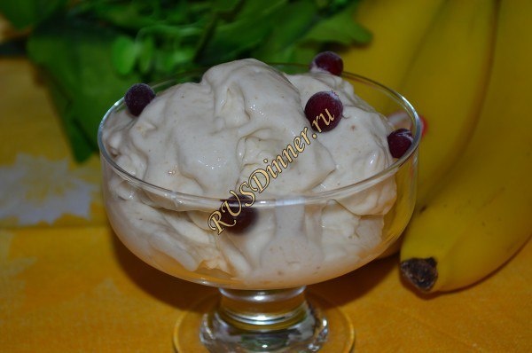 Банановое мороженое От автора: Банановое мороженое не похоже на обычное мороженое, которое мы всегда едим. Оно не похоже не по консистенции и не по вкусу, скорее всего такое мороженое на любителя. Но если добавить каких-либо сиропов или свежих ягод, то можно себя побаловать и таким мороженым. Ингредиенты: Бананы - 300 гр. Сахар - 50 гр. Источник: https://rusdinner.ru/page/bananovoe-morozhenoe