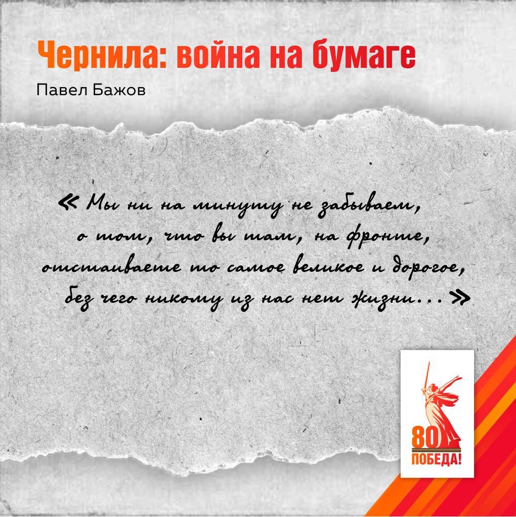 🖋 «Чернила: война на бумаге» — Павел Бажов Во время Великой Отечественной войны Павел Петрович Бажов жил и работал в Свердловске. Возраст не позволял ему идти на фронт, но он остался рядом со страной. Писатель встречался с рабочими оборонных заводов, школьниками, раненными бойцами в госпиталях. Его слово звучало просто и по-домашнему — как напоминание о силе духа и родной земле. 📖 В те годы Бажов продолжал писать. Его сказки о мастерах и камне, о труде и упорстве читались особенно остро. В Даниле-мастере и Хозяйке Медной горы узнавали черты тех, кто ковал Победу у домен и станков. Солдаты писали ему письма с фронта, просили прислать книги — «Малахитовая шкатулка» помогала помнить о доме и Урале. 🏅 В 1943 году Бажов получил Сталинскую премию за этот сборник, а годом позже — орден Ленина и медаль «За доблестный труд в Великой Отечественной войне». Он трудился для страны так же, как его герои: терпеливо, с любовью к делу и верой в людей, которые держали Урал. 📜 В фронтовых газетах
