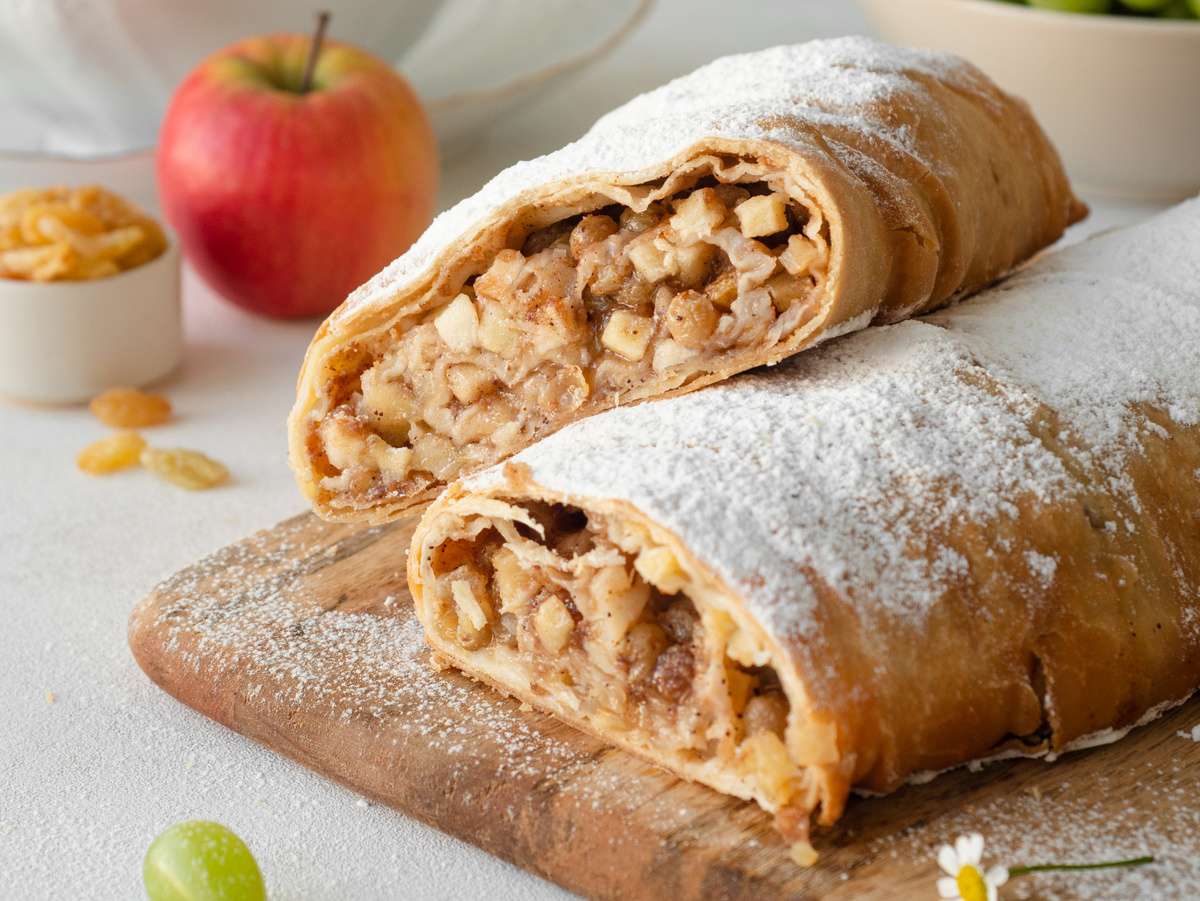 Ингредиенты → Шаги → Результат Это классический десерт чешской и словацкой кухни, унаследованный от австрийской традиции. Штрудель готовят из тончайшего слоёного или дрожжевого теста с начинкой из тушёных яблок, изюма, корицы и крошек хлеба или крошек булочки. Важно: тесто должно быть настолько тонким, чтобы сквозь него можно было читать газету — так гласит старинное правило. Тесто (можно использовать готовое слоёное, но лучше домашнее): Начинка: Для смазывания и посыпки: Приготовь тесто (если делаешь вручную): 1. Замеси эластичное тесто из муки, воды, масла и соли. Вымеси 10 минут. 2. Сформируй шар, смажь маслом, накрой и дай отдохнуть 1 час. Приготовь начинку: Собери штрудель: Выпекай: Подавай: Тёплым, посыпав сахарной пудрой. Отлично сочетается с ванильным мороженым или взбитыми сливками. Хрустящая, слоистая корочка и сочная, ароматная яблочная начинка с нотками корицы и изюма. Настоящий штрудель — это не просто пирог, это искусство ручной работы и терпения.