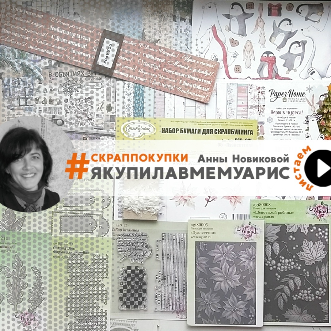 Хвастаться покупками из любимого магазина - это не только приятно, но и ооочень полезно. Ведь можно получить много идей для будущих работ и заряд энергии. Одним словом, море вдохновения! Всем привет! С вами Анна Новикова и я пришла, чтобы поделиться своей радостью от моих покупок в Мемуарис. А покупок в октябре у меня было две! И начну я свой обзор не с первой, а со второй! Почему? Да потому что это была покупка новых, и таких долгожданных, Говорилок от PaperRus! Итак, любуемся: «Говорилка картонная. Добрые открытки» и «Говорилка картонная. Чтобы было ещё смешнее». Сколько интересных надписей, которые совсем скоро вы сможете увидеть в моих работах. Ну, а сейчас мы перейдём к обзору моей первой октябрьской покупки в Мемуарис. И начнём мы с наборов зимней скрапбумаги. Набор бумаги «В объятиях зимы» от Paper Home. Какая красивая, атмосферная бумага! Много интересных фонов и принтов. И несколько листов с элементами для вырезания и карточками. Подойдёт и для альбомов, и для зимних дневничко