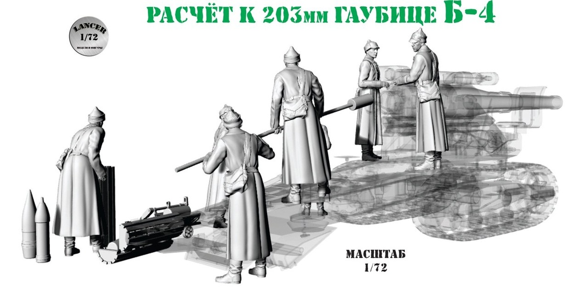 Московская LANCER выпустила на 3D-принтере фигуры расчета, снаряды и снарядные кококры для модели гаубицы Б-4 в масштабе 1/72 от "Звезды