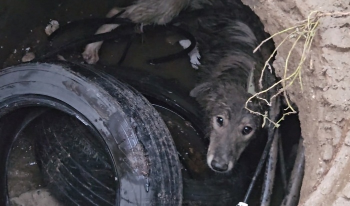 В Волгограде спасли упавшую в колодец собаку