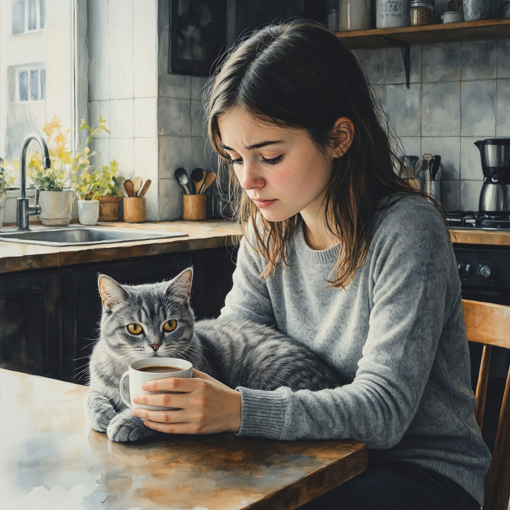 Она не успела сделать и шага, как из гостиной выпорхнула тень. Серебристая, стремительная. И через мгновение к ее ногам прижалось что-то теплое, живое, громко мурлыкающее. Феба. Кошка, которую она, пятнадцатилетняя, принесла когда-то с улицы, замёрзшую и жалкую. Мама тогда ворчала, но отогрела котенка, и Феба осталась.