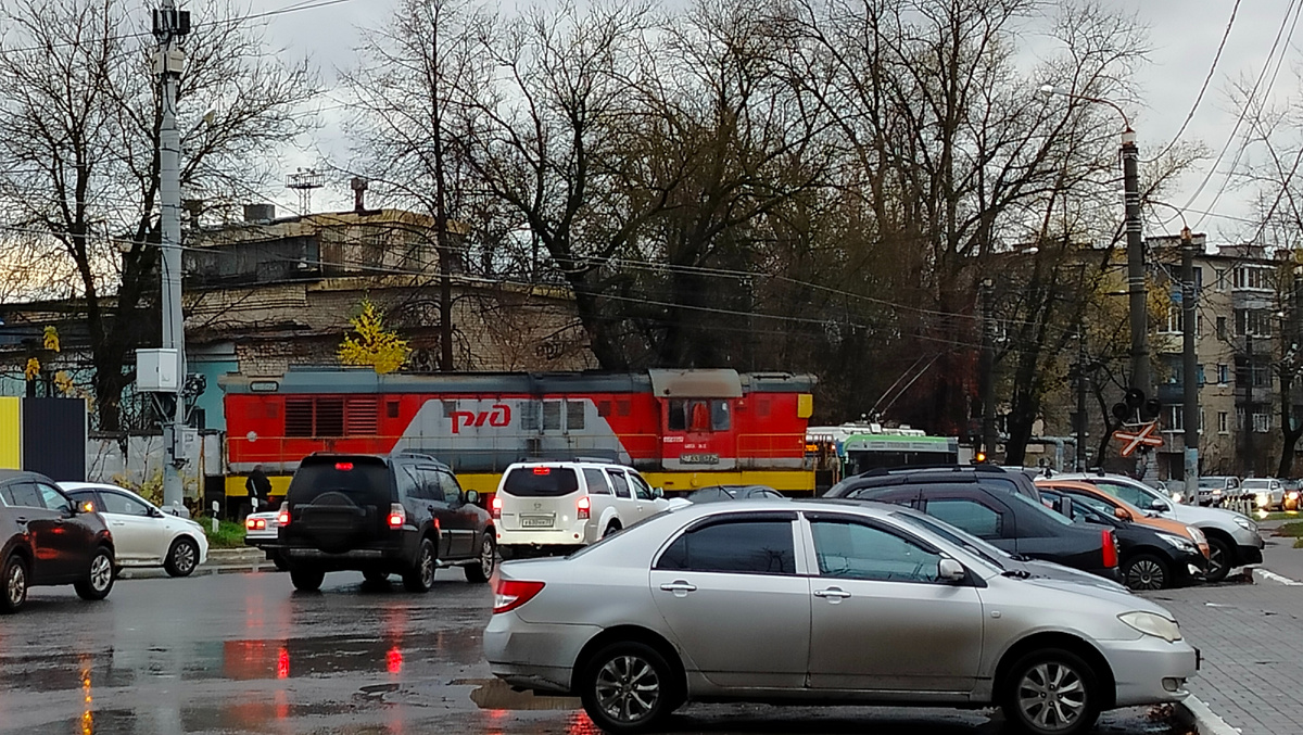 На самом деле, правильнее было бы сказать – про военный госпиталь тепловозов. Потому что эти самые тепловозы в Калуге ремонтировались. А еще можно было бы озаглавить – «Тепловозы на улицах Калуги», потому что, глядя на фотографии, думаешь – ну вот совсем все смешалось в кучу: поезда, автомобили, троллейбусы – это ведь не точно не железнодорожная магистраль и точно улицы города. И да, раз Калуга – то Дмитрий Намаконов автор фото. И нет, секретного в этих фотографиях ничего нет: враг прекрасно осведомлен где и как ремонтируют тепловозы, но руки коротковаты, чтобы как-то этому помешать. В общем, сегодня еще одиин обзор фактически из серии «Один фотоальбом». 1-8. Как описывает это событие сам Дмитрий: «Маневровый тепловоз ЧМЭ3-1775 заезжает на территорию тепловозоремонтного предприятия, а потом вытаскивает оттуда целый поезд из военных тепловозов. И один ещё остаётся на очереди». Если кто-то может что-то добавить к этому описанию – добро пожаловать в комментарии. Вот как-то так. ПС И еще р