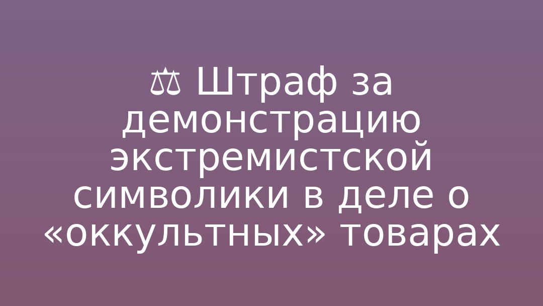 Суд в Волгограде привлек к ответственности 47‑летнюю Любовь Р. по ч. 1 ст. 20.3 КоАП РФ. Поводом стала продажа хендмейд‑изделий с названиями «алтарный подсвечник», «подсвечник алтарь со свечами», «карманный бес идол истукан», которые суд счел предназначенными для совершения оккультных обрядов и относящимися к идеологии сатанизма. Назначен штраф 1 000 руб. Обвиняемая признала вину, переименовала магазин и удалила часть карточек товаров.
