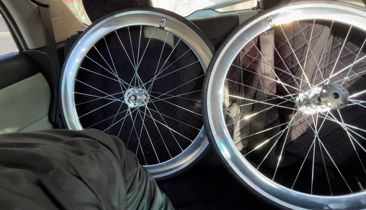 Изначально у меня от него была только рама и вилка, больше ничего. Знакомый отдал за просто так, т.к. у него все это давно лежало без дела. Хотелось минимализма, рама серебристая, вот и все запчасти я старался искать такого же цвета. Серебристый, блестящий, цвета фольги, называйте как угодно. Не было цели выделиться, но хотелось собрать что-то нестандартное, к тому же я такого ни у кого не видел. Начал с колес, стоили они около 12 тысяч. Их я заказывал с Китая, как и все остальные запчасти, ссылки скидывать не буду, кому надо, ищите сами. Т.к. обода высокие, то и вес их не слишком легкий, но мне был важен внешний вид и цвет просто идеально подходил. Колеса были уже полностью в сборе, оставалось только качнуть. Но предварительно снял покрышки и проверил состояние обода изнутри, все было в порядке. Начался этап сборки. Сложного ничего не было. К тому же собрал быстро. Больше времени ушло на подготовку и ожидание посылок с алиэкспресса. И вот такое "безобразие" получилось на выходе. Макси
