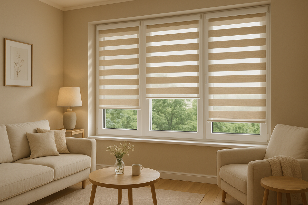 ✓ Если нужно аккуратно и «как в коробке» на ПВХ-окне — кассетные рулонные или зебра.
