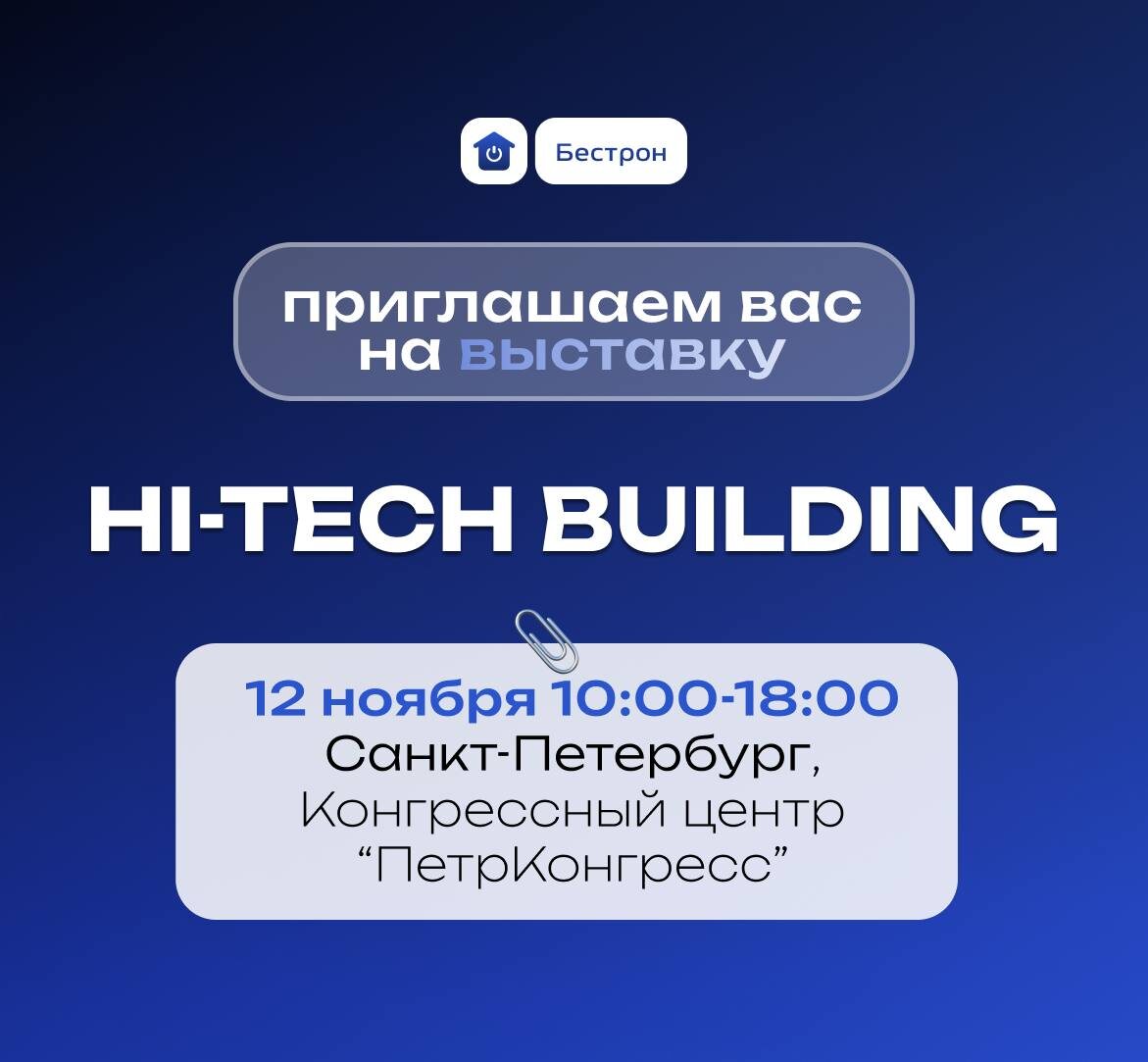 🔥 Hi-Tech Building в Санкт-Петербурге! 🔝 Легендарная московская выставка Hi-Tech Building теперь и в Северной столице! Узнай всё о домашних и коммерческих системах автоматизации — без поездки в Москву. 🗓 Когда: 12 ноября, 10:00–18:00 📍 Где: Конгресс-центр «ПетроКонгресс», ул. Лодейнопольская, 5 Что вас ждёт: - Оборудование и решения «Умный дом» от ведущих брендов - Деловая программа с экспертами отрасли -Выступление Петра Андреева на дискуссии - Дискуссия «Как девелоперу выбирать решения для автоматизации» 🙌 Мы ждём вас на нашем стенде №8 🎟 Вход бесплатный по регистрации ➡️ ЗАРЕГИСТРИРОВАТЬСЯ 📌 Не упустите шанс познакомиться с будущим умного дома в Петербурге!